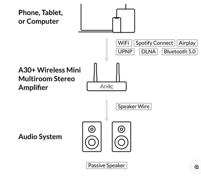 Mit Arylic Geräten können Sie Musik vom Internet, NAS, Computer und Mobil drahtlos an bereits vorhandene Audiogeräte übertragen.